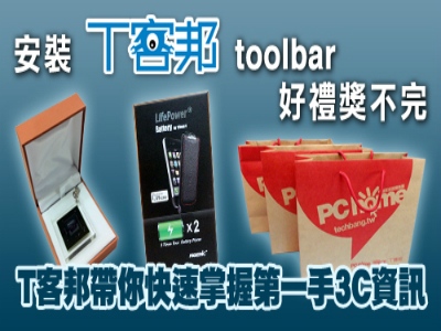 現在安裝 T 客邦或 T17 的 Toolbar,不僅給你更快更豐富的資訊,參加我們「安裝 T 客邦 Toolbar,大方送好康」活動,nVIDIA Tegra 3 晶片吊飾、LifePower Battery 外接式電池以及驚喜好禮袋,全部送給你!