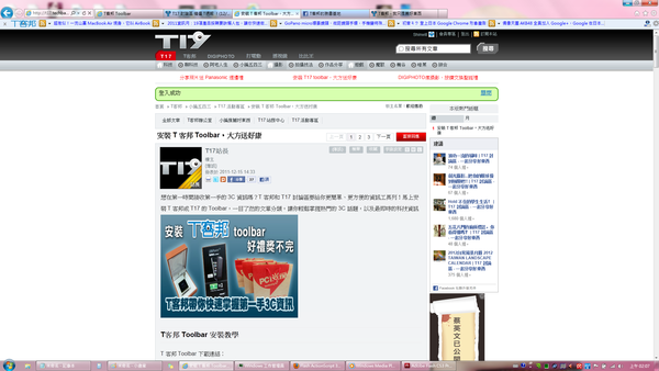 ▲ 安裝成功後,就會出現 T 客邦 Toolbar 了!