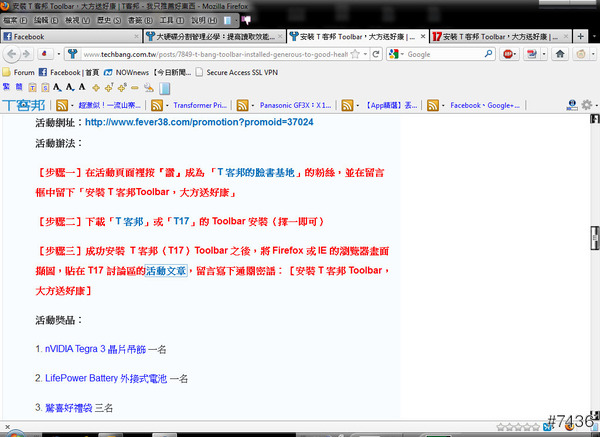 【步驟三】成功安裝  T 客邦(T17)Toolbar 之後,將 Firefox 或 IE 的瀏覽器畫面擷圖,貼在本活動文章,留言寫下通關密語:【安裝 T 客邦 Toolbar,大方送好康】