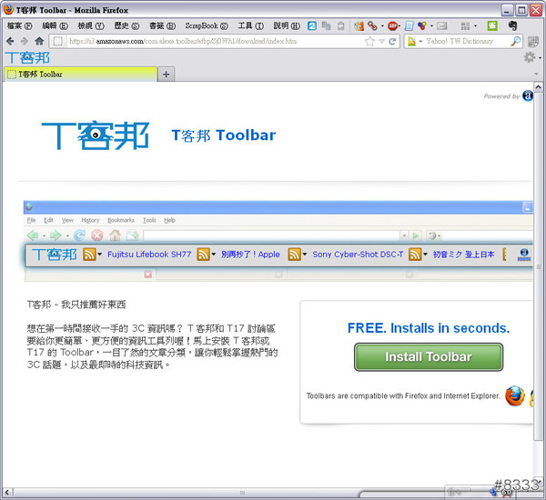【安裝 T 客邦 Toolbar,大方送好康】 <( ̄︶ ̄)>
