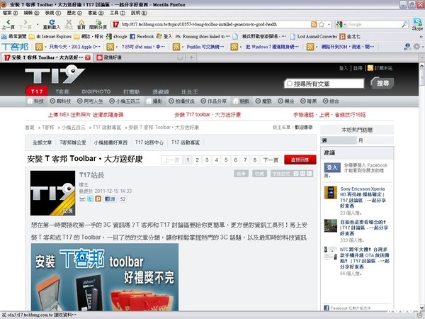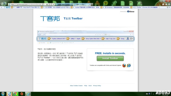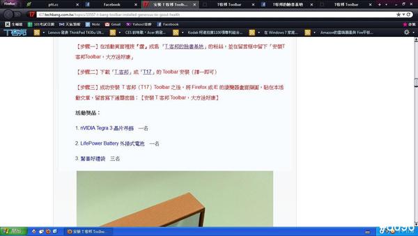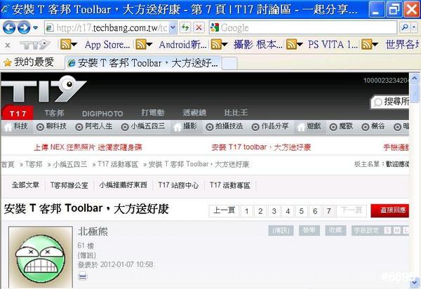 【步驟三】成功安裝  T 客邦(T17)Toolbar 之後,將 Firefox 或 IE 的瀏覽器畫面擷圖,貼在本活動文章,留言寫下通關密語:【安裝 T 客邦 Toolbar,大方送好康】