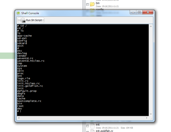 ▲ Shell Console 如果看到「#」表示你的 Android 是 root 的,如果看到的是「$」表示你沒有取得最高權限----是不是覺得很熟悉呢?要記得 Android 底層是 Linux 延伸的呢。