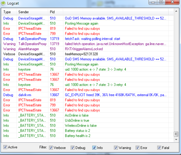 ▲ LogCat,看 Log 抓 Bug 相信大家都很熟悉,還可以單獨選擇類型來閱讀,十分實用。