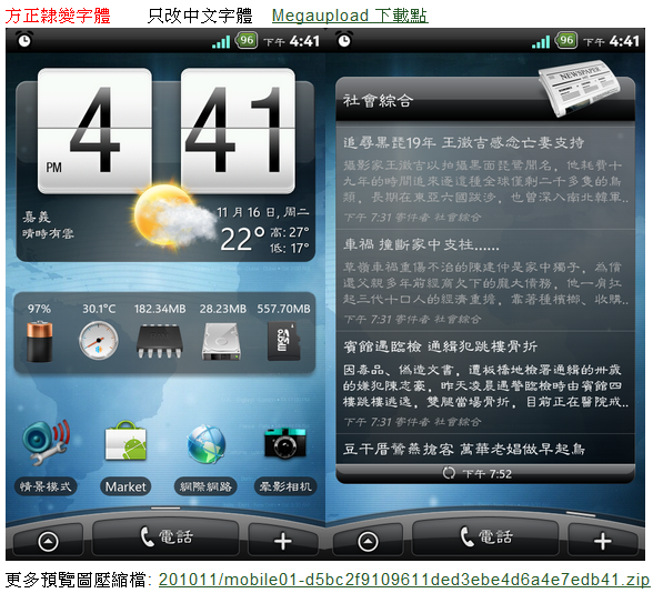 ▲ 在 Mobile01有一串非常棒的字型討論串,有許多更改字型的心得與字型下載(來源:Android超優字型專貼 機子需要ROOT過 (附圖!!) 共二十三種字體)