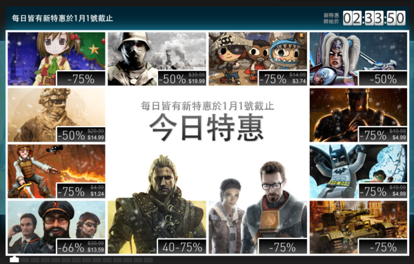 ▲ 每天都有不同的遊戲特價,一直到一月一號!(來源:Steam)