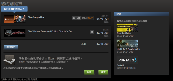▲ 我本次購買的兩個遊戲,Valve OrangeBox 與巫師。