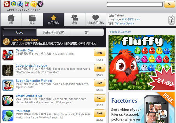 ▲可以從這裡從查看有多少款的免費 App。http://mktg.getjar.com/getjargoldcatalogue.html(捲軸是向右滑動)