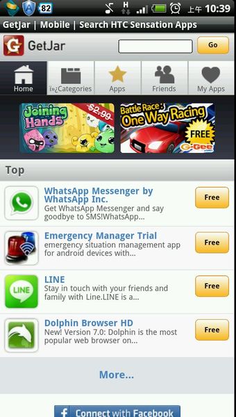 ▲之後使用者就可以直接透過手機裡的 Getjar App 下載軟體囉!