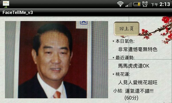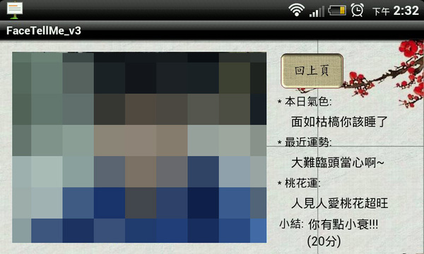 軟體使用非常簡單,從軟體將朋友拍進去,等一會就可以看到算命成果了,製作人這麼說:「我們的程式將從圖片中擷取到使用者臉部的輪廓,並進一步分析其氣色、五官以及面色,最後提供使用者”本日氣色” 、”最近運勢”、”桃花運”及”小結”等實用資訊。」