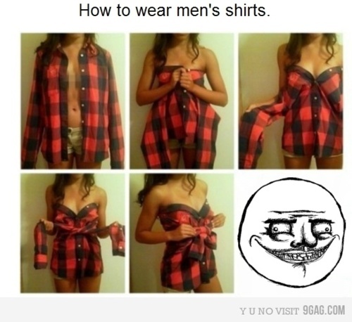 男友襯衫大改造,怎麼變這樣? 生活 · 萬磁王 · 發表於 2012-01-09 11:07 · 夯 精 · 檢舉 列印版 twitter plurk 6.7萬閱讀次數 先前一篇網路正妹不是人人都能學的!才說明了不是所有人都能學出網路圖片的風格。近日網路上又流傳一張男友襯衫大改造的圖片,教女生把男朋友的襯衫穿成可愛洋裝,也引起許多網友的學習,不過.....學東西是要有天份的XD ▼原本的男友襯衫大改造版本 ▼網路上的學習版本 ╯-__-)╯ ╩╩ 資料來源 1 個人說讚 收藏 快速回應 引言回應 共 1 則回應 1 樓 · Uty Li · 發表於 2019-11-20 09:29 · 檢舉 對不起,此篇回應已被標記為垃圾,內容只有管理員可見。 讚 登入來回應 header home