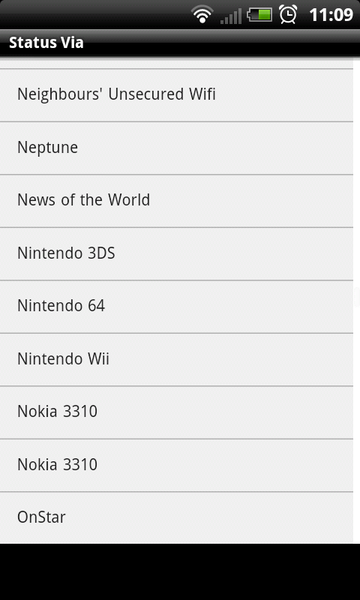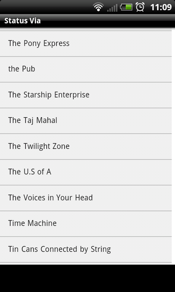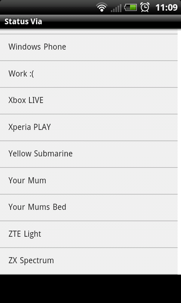 如果是 Android 手機,就可以簡單的用 Status Via(經由…狀態)這個小 app 來達成以上的效果囉,且免費版本就提供了非常多種狀態可供選擇,如果升級到付費版本,狀態還可以自訂,自己輸入喜歡的狀態!