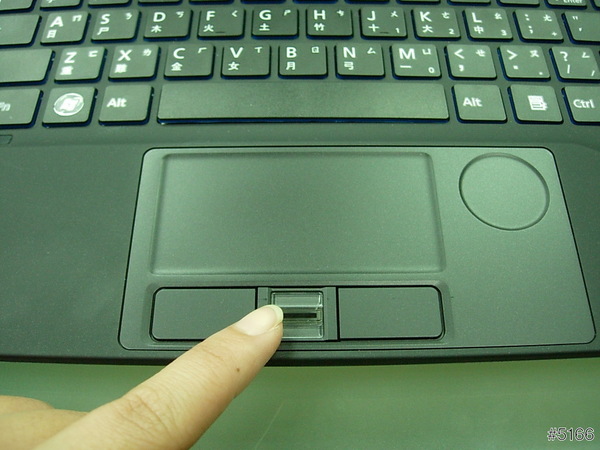 手指比的地方是指紋辨識器,這樣對於資料的安全多了一層保護。方形觸控板旁邊的圓形捲軸