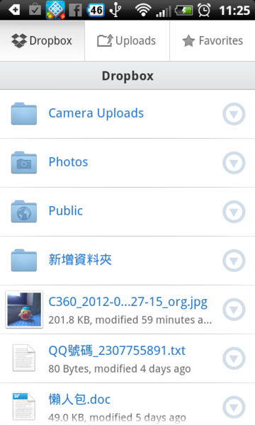 ▲新的測試版本 Dropbox for Android 2.0.9,目前還未在 Android Market 上架,所以只先下載 APK 來安裝。