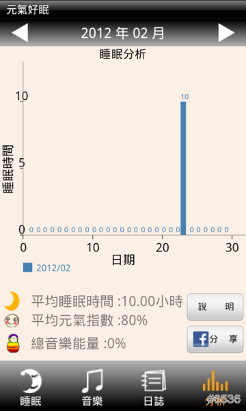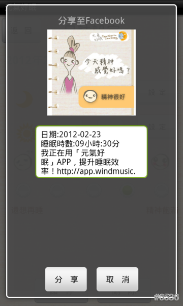 ▲ 利用《元氣好眠》App 睡了一夜好眠,也能透過 Facebook 和好友一起分享喔!