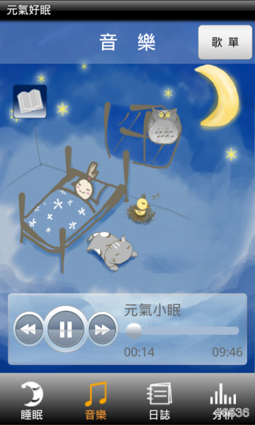 ▲ 開始使用後,《元氣好眠》App 就會緩慢地播放音樂,讓使用者慢慢進入夢鄉。