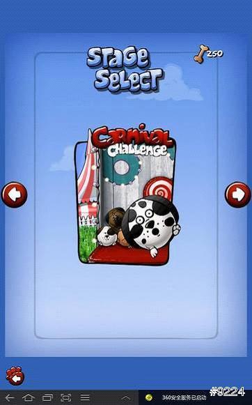 點擊最上面的那只小狗狗,然後你拖動手指試試看,你會看到一個箭頭了,你再鬆開手指試試看,小狗就會順著那個箭頭被發射出來。注意,你的手指拖得越長,則發射的力道也就越大。