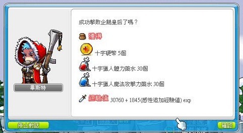 對完話後他會要求玩家打倒企鵝皇后,往後一張地圖,就能看到時空門了!