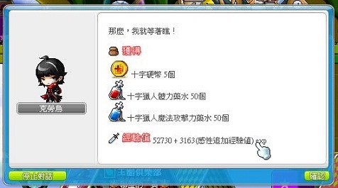 打完後出來對話,獲得獎勵吧!!之後頭上會跑出燈泡!