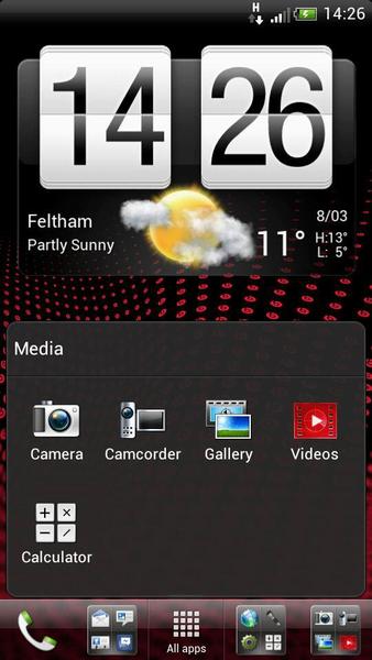 ▲ AndroidHD 也同步證實了這個消息,可以看到更新到 Android 4.0 與 Sense 3.6 之後桌面有少許更改,最下方變成四個 icon 排列,且有資料夾設計。(來源:AndroidHD)