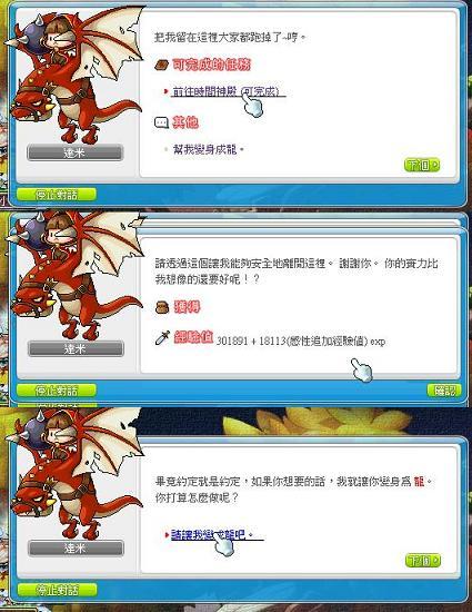 打完後跟達米對話~最後選取請讓我變成龍吧!變成龍~飛到過去的時間神殿吧!
