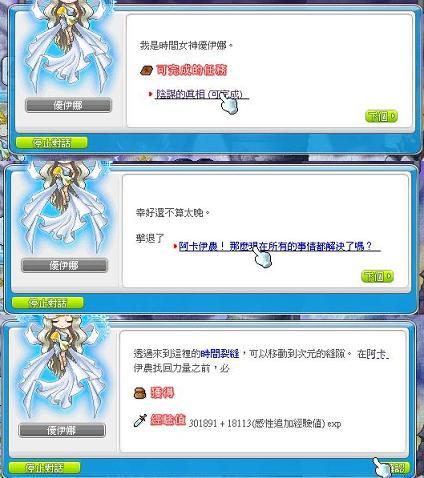 快速的打到阿卡伊農分身~經歷了苦戰終於打倒了!回去找時間女神優伊娜對話吧!