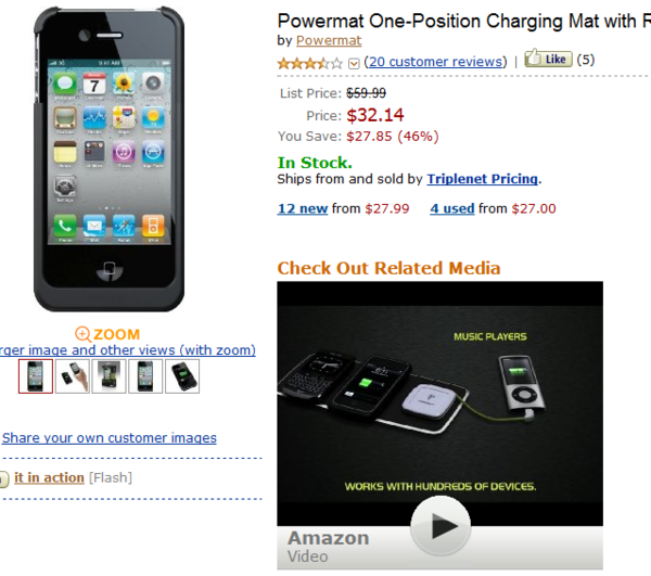 那如果我們以市面上其他無線充電的品牌來說,在這裡我以 PowerMat 這個牌子來舉例,它同時有出給手機的無線充電背蓋與充電底座,同樣都是只要將手機擺放上去就可以充電。