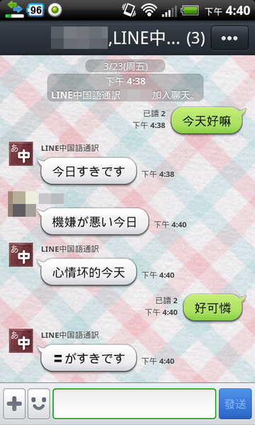 ▲之後可以跟其它國家朋友聊天,把翻譯機器人家加入聊天群組,就能即時看懂朋友在打什麼了。