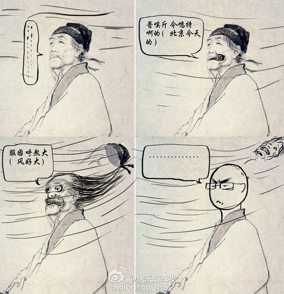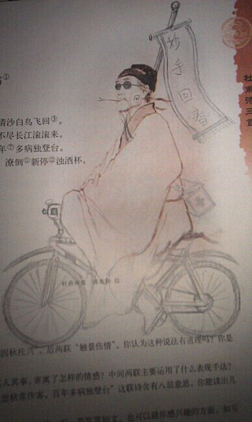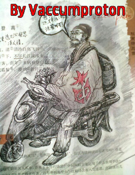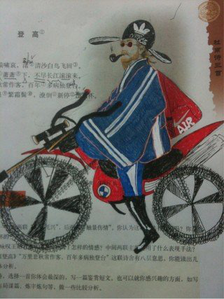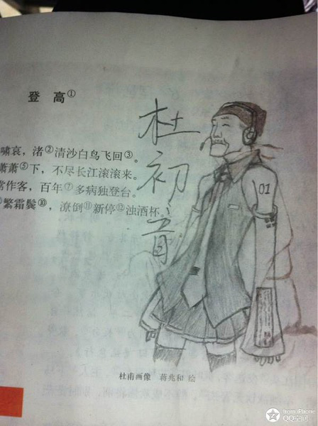 讀書時大家總是會在課本中亂塗鴉,不過近來被惡搞得對象換到了詩聖杜甫身上,一下要騎機車,一下子要談情,真是個大忙人啊! 這是杜甫原始圖。 以下為惡搞圖。 資料來源: (1)、(2)、(3) 6 個人說讚 收藏 快速回應 引言回應