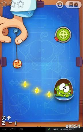 【遊戲介紹】:喜歡吃糖果的可愛小怪物Om Nom又來了~這回收到Om Nom的是一位科學家,他將對這只喜歡糖果的Om Nom開始研究。上一作的安卓平板遊戲《Cut the Rope》憑藉其可愛的2D畫面和簡單有趣且富有挑戰性的遊戲設計,獲得了大量玩家的喜愛。而現在《Cut the Rope》也推出了第二作安卓平板遊戲《Cut the Rope:Experiments》,玩家將繼續與這只可愛的喜歡吃糖果的小怪物Om Nom,一起繼續各種有趣的實驗。作為新一作的安卓平板遊戲《Cut the Rope:Experiments》,本作並未在畫面上進行大幅的改動,依然延續了色彩多樣、畫風可愛的2D畫面樣式。而主角自然還是那只喜歡吃糖果喜歡到不行的小怪物Om Nom。不過安卓平板遊戲《Cut the Rope:Experiments》也並不是完全在畫面上沒有變化,新的關卡場景和新的遊戲要素的增加,使得遊戲在不少方面都出現了令人覺得比較新鮮的改變。同時《Cut the Rope:Experiments》也增加了新的遊戲配樂,並且舊的配樂也進行了一些新的編曲改動,使得遊戲的配樂保持了令人輕鬆越快的風格,也增加了一些新鮮感。操作方面依然是觸屏的形式,而且遊戲還會有簡單淺顯的各種操作圖文介紹,來幫助玩家理解遊戲的操作。無論是玩過前作或者剛接觸遊戲的朋友,都能夠十分輕鬆的理解和掌握遊戲的操作。至於過關條件和過關評價,依然是讓Om Nom吃到糖果,以及獲得全部的三個星星來得到最高的評價。星星的數量也是解開新的大關卡的先決條件,所以盡可能的去取得吧。遊戲包含三個大關卡,一共會包含75個小關卡。三個大關卡都會有各自不同的主題,例如第一個大關卡是入門級的,主要是讓玩家接觸、熟悉和掌握遊戲的操作和新要素。在關卡中還會有4張隱藏的照片,玩家可以挑戰一下自己的尋找能力,把這些照片給找出來。另外遊戲還有“Gift This App”功能,可以讓玩家把遊戲分享給自己的朋友。如果某個關卡實在不知道怎麼過的話,也可以點擊右上的菜單按鍵,調出菜單選擇跳過關卡。不過跳過的關卡就不會得到評價的星星。作為續作,《Cut the Rope:Experiments》不僅延續了前作優秀的遊戲性和畫面表現力,同時還有不少新的遊戲要素增加,使得遊戲保持了很高的可玩性和新鮮感。喜歡前作以及喜歡益智遊戲的朋友,不要錯過這回的《Cut the Rope:Experiments》咯。