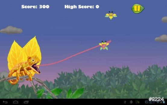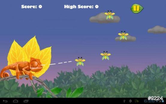 【遊戲介紹】:一款畫面出色的休閒遊戲。遊戲中變色龍家族面臨老鷹的威脅。而你要幫助一只聰明的變色龍逃脫厄運。你控制的變色龍需要食物才能變色,躲避老鷹的抓獲。遊戲中你要畫出舌頭的路線,把螢幕上所有的蟲子都要吃掉,而你只有3次設計路線的機會喔!否則天上的老鷹就會把變色龍抓走!