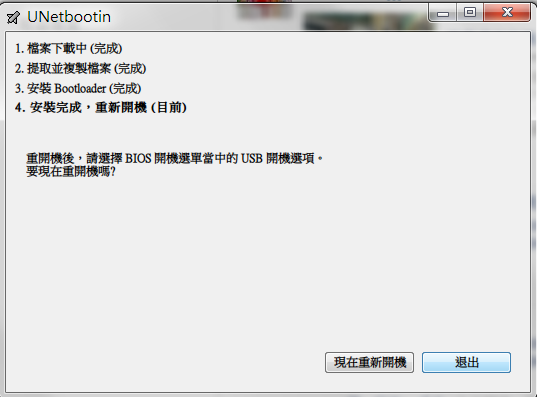 ▲ 作好了之後不要選擇重新開機,因為我們是要在小筆電上頭安裝的(如果你是在小筆電上作業,就可以直接重開機)。