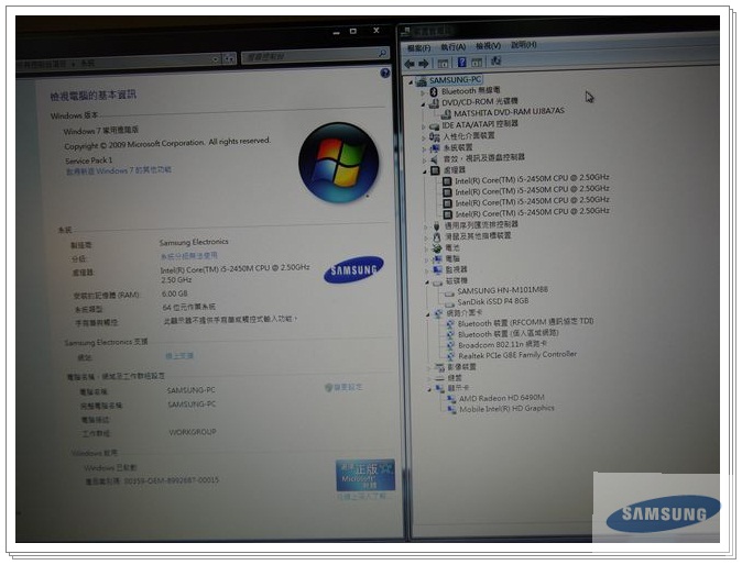 打開裝置管理員看規格,採用Intel Core i5 2450M處理器,時脈2.5GHz。支援雙顯示晶片,獨立顯示卡為ATi Redeon HD6490M。