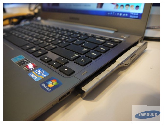 三星筆電5系列,就是三星的Ultrabook系列,特色是高容量的硬碟;一樣有快速開機/恢復/上網;輕薄,最輕1.4Kg,最薄14.9mm;長效電池;內建ATi Redeon HD7550M獨立顯示卡,在這麼輕薄的機身仍然有光碟機,雖然光碟機使用次數漸漸少了,不過看DVD總需要光碟機;高亮度螢幕300nit。