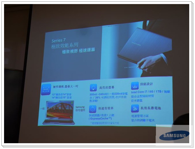7系列的特色是一樣有大一吋的螢幕;300nit~340nit亮度的螢幕 ; 快速開機/恢復/上網;頂級設計,採用Core i7處理器/8G 記憶體/1TB/獨顯及長效電池。