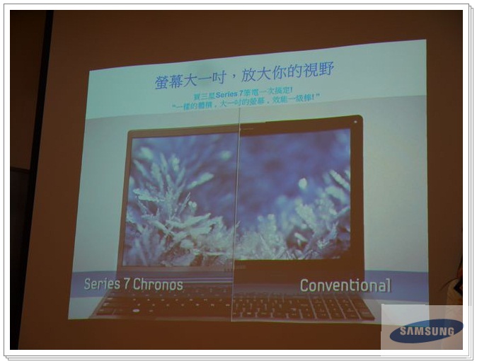 和以往的三星筆電比較,一樣大小,螢幕更大。