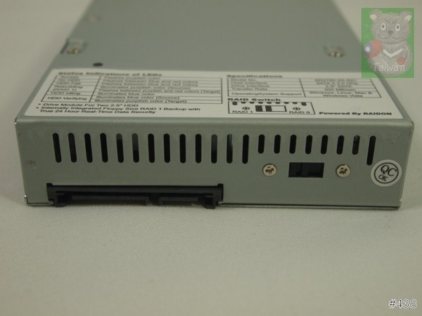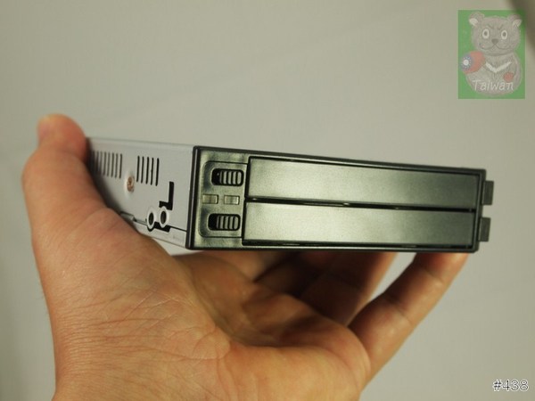 確實就是3.5"硬碟/3吋半軟碟機相同的大小,以這樣可以支援熱抽取功能的迷你磁碟陣列裝置、說真的取代主機上原本3.5吋軟碟機的位置,真的是在適當不過了!相信跟馬克一樣的iT與資訊設備玩家還有專業的MIS從業人員應該會喜歡他的。