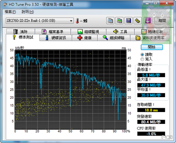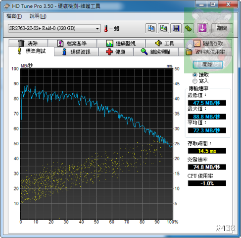 其中還包括最近出包的某品牌...他們有跳出來說明跟RAID之間的種種ooxx,但是不管啦~馬克就是在幫大家做一些實機的測試與經驗的分享嘛、如果都像廠商一樣以最佳化的狀況來進行測試,那這樣對一般使用者的意義就消失一大半了嘛!這樣的臨機測試才有刺激與挑戰還有真實成果可以呈現,相信對廠商也是一樣有助益、這些測試過程與數據他們也可以參考,同時了解一般的使用者會怎麼搞也是有參考價值的。^_^” 所以就這麼辦、順便給SR2760-2S-S2+來個嚴苛考驗吧!