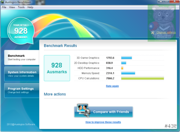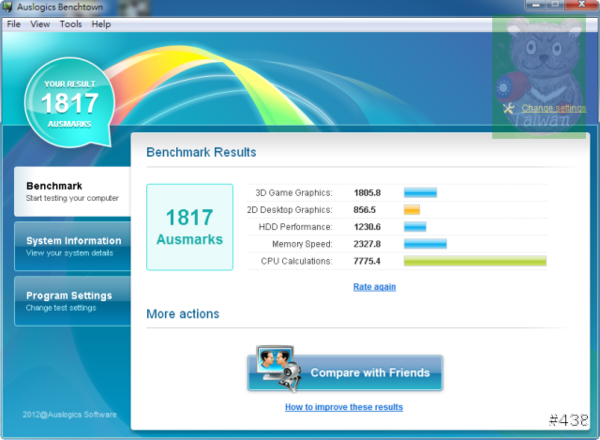 對嘛!就說開機速度變快應該還是有加持才對,系統效能由 928提升到1817 、磁碟效能由316.4翻了4倍提升到1230.6 ^_^