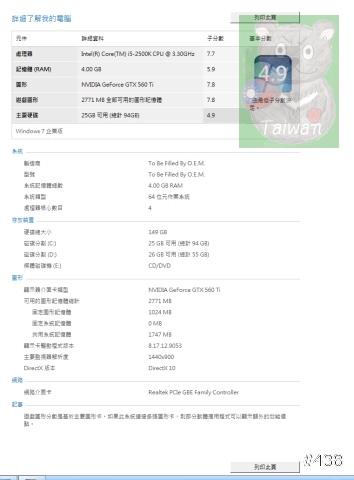 可是...由Windows7 體驗指數可以看到竟然全部都沒有改變、硬碟體驗指數還是4.9...,這個是因為測試參數的關係嗎?