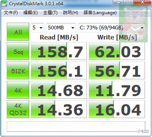 這裡看到並由剛剛的前測48.6大幅提升到158.7,甚至比單顆硬碟Toshiba 2.5” SATA 640G 的66還多出1倍有餘,春天真的來了!這樣兼具安全與效能的應用組合真的是大成功,iT / MIS / 電腦玩家…喔還有企業主、大家有福了,不用再因為這個那個...年以兼具兼顧而綁手綁腳了,讚~讚~讚!