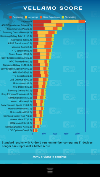 而在 OneXL 上市之即,也有人用美國 at&t 的 OneXL 測試了一些結果出來,要知道開發機的效能是一回事,真正出來的成品又是另外一回事。但從測試結果出來,OneXL 的表現與 MSM8960 開發機相仿,都是非常誇張,誇張極了。