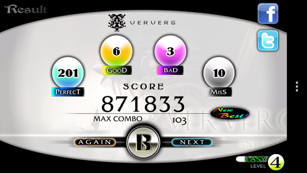 ▲ 免費版總共有這三首歌可以玩,一樣有分 HARD 版跟一般版本,一般版本分數到達標準後才能開啟 HARD 版。