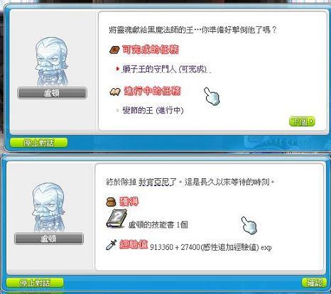 這點選技能書後,會隨機給予該職業的對應技能書,目前只開到20級的書,最後跟盧頓對話。
