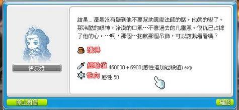 對話完後出來後,跟伊皮雅對話獲得獎勵。