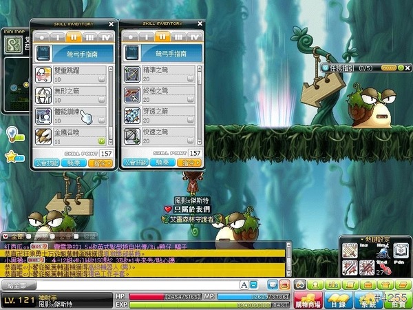 三轉(普&終):四連箭1→暴風雪箭20→集中20→致命箭5→升龍弩20→召喚銀隼20→四連箭20→替身術20→致命箭15→躲避10→龍魂之箭11(總計151點)