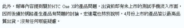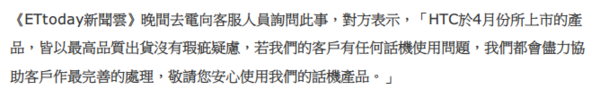 ▲ hTC 表示,網路上的問題討論起因是有測試機流入市面,四月份所生產的都沒有瑕疵問題。(來源:鉅亨網)