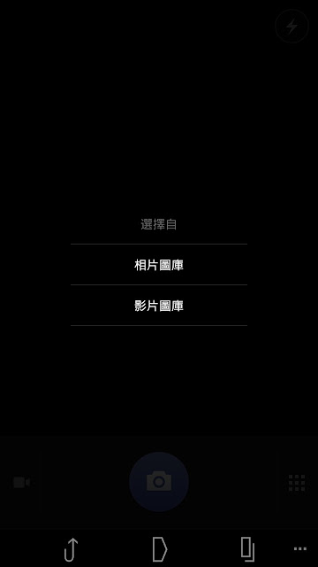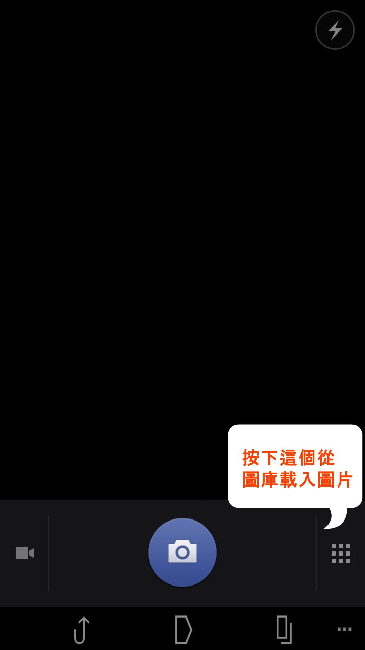 相機介面很陽春,有補光燈的切換及快門鍵,右下角的按鈕可以載入圖片。