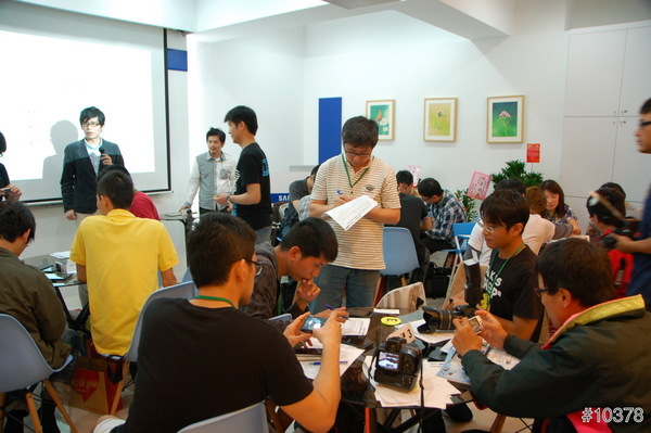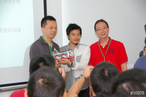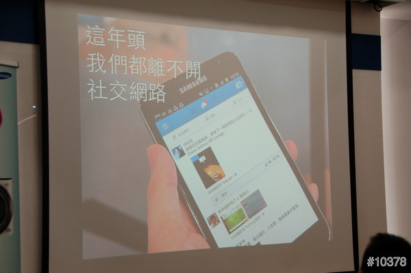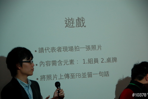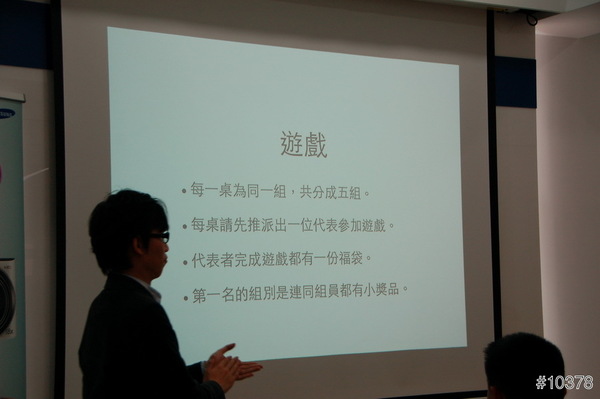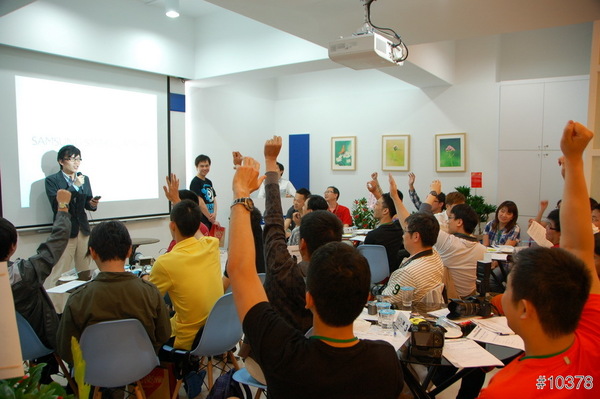 每組選出一位代表,使用Samsung SAMART CAMERA將組員及桌牌號碼拍下,上傳至臉書並留一句話即完成,最快完成的那組,全組員就可以獲得贈品。