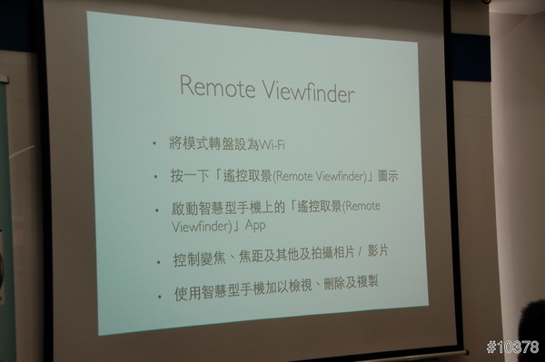 設定跟前幾項一樣,只要開啟Romote Viewfinder功能,接著用手機配對後即可。並能將拍的照片加以檢視、刪除或複製到手機。