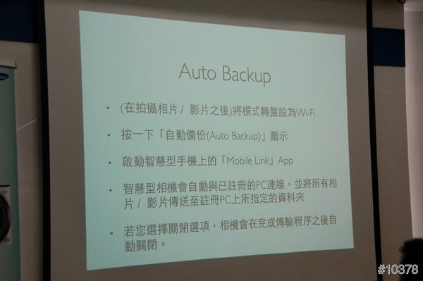 小侯也當場示範Moblie Link功能,設定完全不用三分鐘就能將相機裡照片,在手機上預覽和下載。